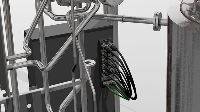 In hazardous areas (class 1, division 2) the I/O module is mounted in the direct vicinity of fermenters. It connects IO-Link valve controllers from GEMU. Due to the short time frame available for the implementation of pharmaceutical projects, the protection classes of the multiprotocol ethernet module are a benefit. With IP67 and IP69K, mounting in a control cabinet is unnecessary, while the use of pre-assembled cables saves a lot of time.