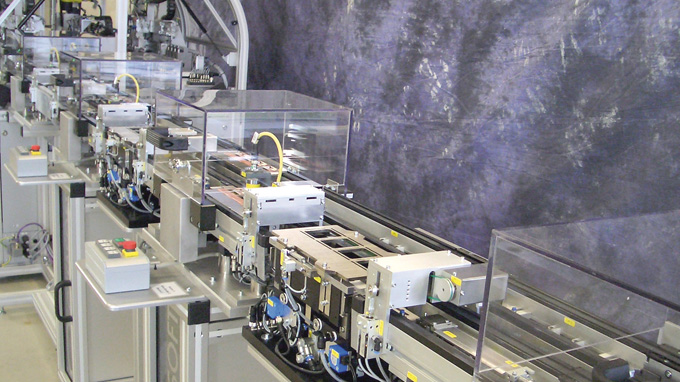 The parts carrier and the corresponding stations are equipped with the BL ident RFID system from Turck, which is connected to the plant’s control system via Profibus DP. Overall, six read and write points are currently integrated in the system: one on the ramp of the loading area, one on each in the maintenance positions in front of the three wire bonders, one with the transverse transport and one in front of the reject part punch. “In the system expansion phase that is now complete, we could also have handled the identification of the parts carrier with alternative technologies,” explains CEO Grünbauer, “but precisely because of the modularity and expansion capability of the system, we decided in favor of the RFID technology. It means that the system can be easily upgraded.”