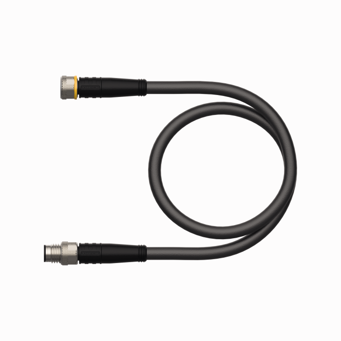 Kabel przedłużający, złącze żeńskie M12, proste, 5-styk. — złącze męskie M12, proste, 5-styk.; długość kabla: 2 m, materiał powłoki: PUR, czarny; aprobata cULus |