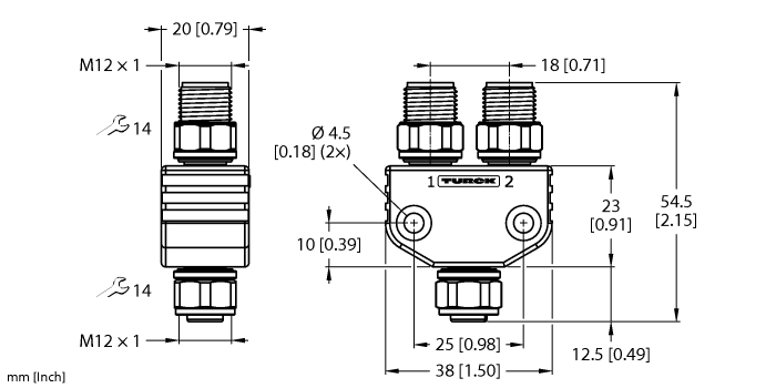 • Złącze żeńskie M12 — 2 × złącze męskie M12